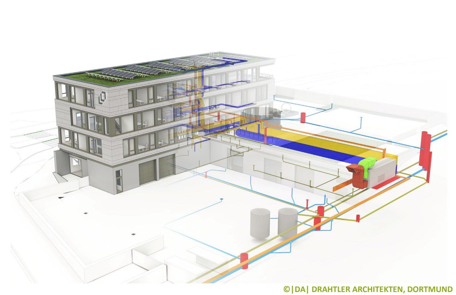 Drahtler Architekten aus Dortmund hatten im Forschungsprojekt sowohl den Entwickler- als auch den Anwender-Part inne. Sie boten mit einem realen Projekt die Arbeitsgrundlage für die Erarbeitung und praxisgerechte Prüfung einer übergreifenden Modellierungsrichtlinie. Sie waren damit sozusagen das Reallabor für die Erstellung einer allgemein verbindlichen und prüfbaren Modellierungsrichtlinie, die in Zukunft zur Anwendung kommen soll. Das Forschungsprojekt, das neben dem Land NRW auf Bundesebene begleitet wurde, ist inzwischen erfolgreich abgeschlossen. Die Grundlage für eine modellbasierte Planungsprüfung in einem nächsten Schritt, seitens der Stadt Dortmund, war somit gelegt.